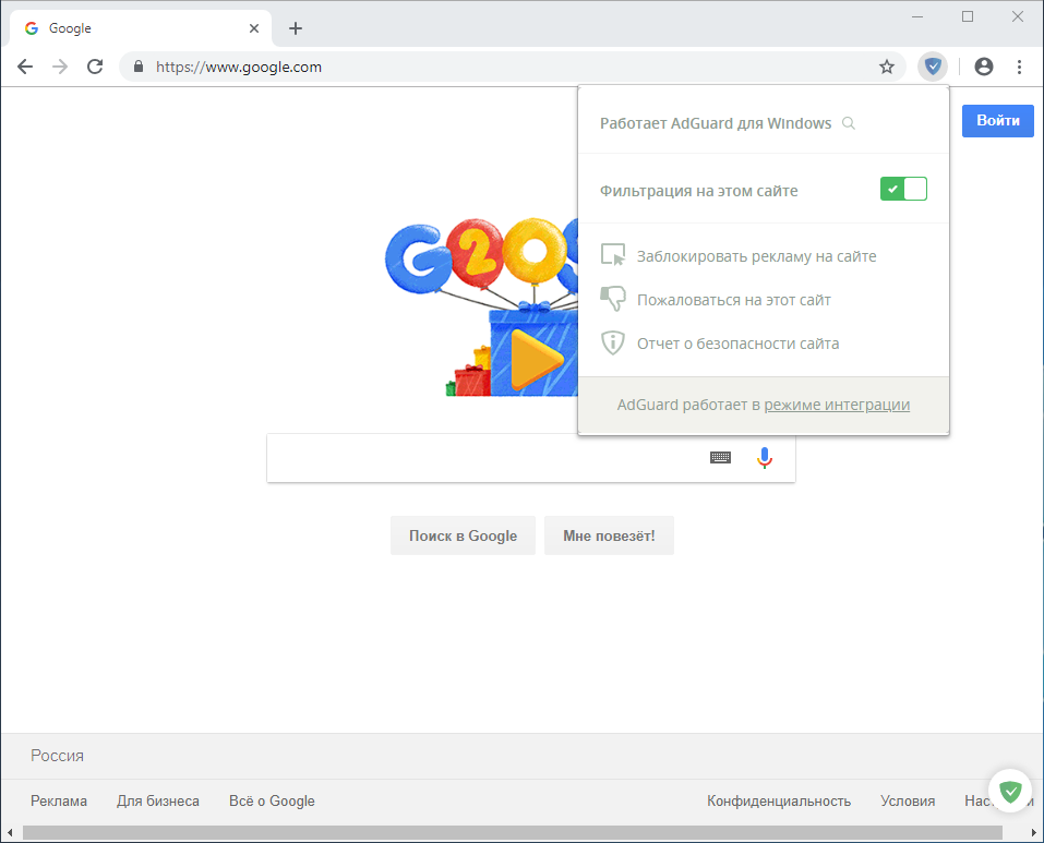 Режим интеграции автоматически включается, когда AdGuard для Windows запущен параллельно с браузерным расширением AdGuard
