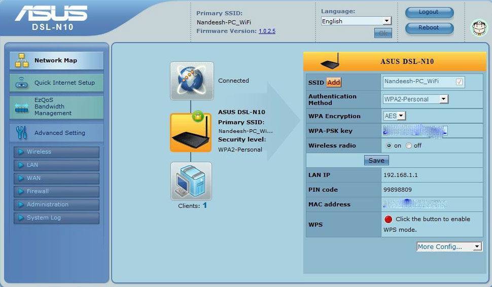 В новых прошивках принцип настройки остается тем же, только нужные вкладки расположены по-другому. Для примера ниже представлена настройка ASUS DSL-N10 для Ростелеком. Порядок действий следующий: