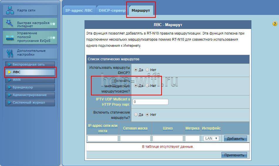 - Здесь откройте вкладку «Маршрут». Поставьте маркер «Да» у пункта «Включить многоадресную маршрутизацию».