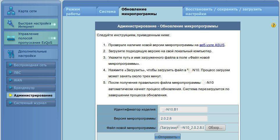 Выберите версию операционной системы, под надписью «Программное обеспечение» выберите пункт, где предлагается последняя прошивка. Скачайте и распакуйте архив. Теперь в интерфейсе маршрутизатора перейдите во вкладку Администрирование — Обновление микропрограммы. Выберите файл, нажмите «Отправить». Примерно в течение 3 минут прошивка будет завершена.