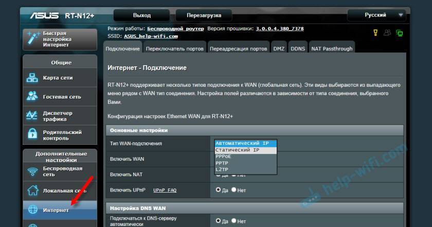 11. Подкорректируем настройки WAN. В меню слева выбираем «Интернет» и отмечаем «Подключиться к DNS-серверу автоматически: Да«: