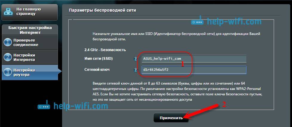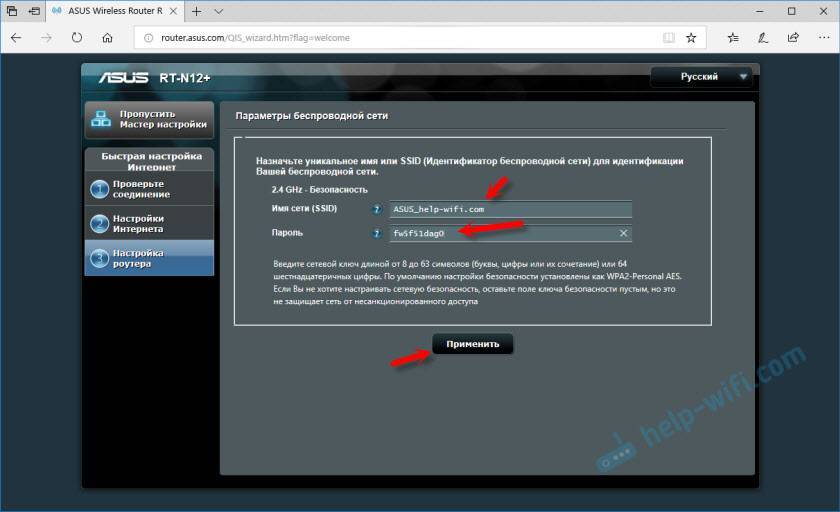Дальше нужно настроить Wi-Fi сеть Asus RT-N12E. Желательно поменять имя WI-FI сети и обязательно установить пароль на эту сеть. Пароль рекомендую сразу куда-то записать.