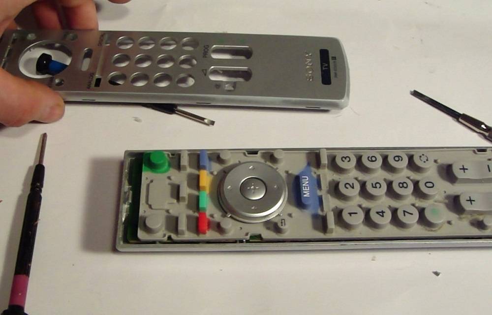 Перед тем как почистить внутри пульт дистанционного управления, его нужно правильно разобрать. Порядок действий может различаться в зависимости от производителя. Большинство устройств от «Самсунг» и «Филипс» скреплены винтиками, и их разбирают с помощью небольшой крестовой отвертки:
