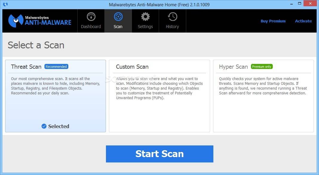 MalwareBytes Anti-Malware — инструмент, который легко справляется с Сrossbrowser и другими «жуками» в автоматическом режиме. Схема очистки у него такая же, как и у AdwCleaner. Но для бесплатного скачивания доступна только пробная версия на 14 дней.