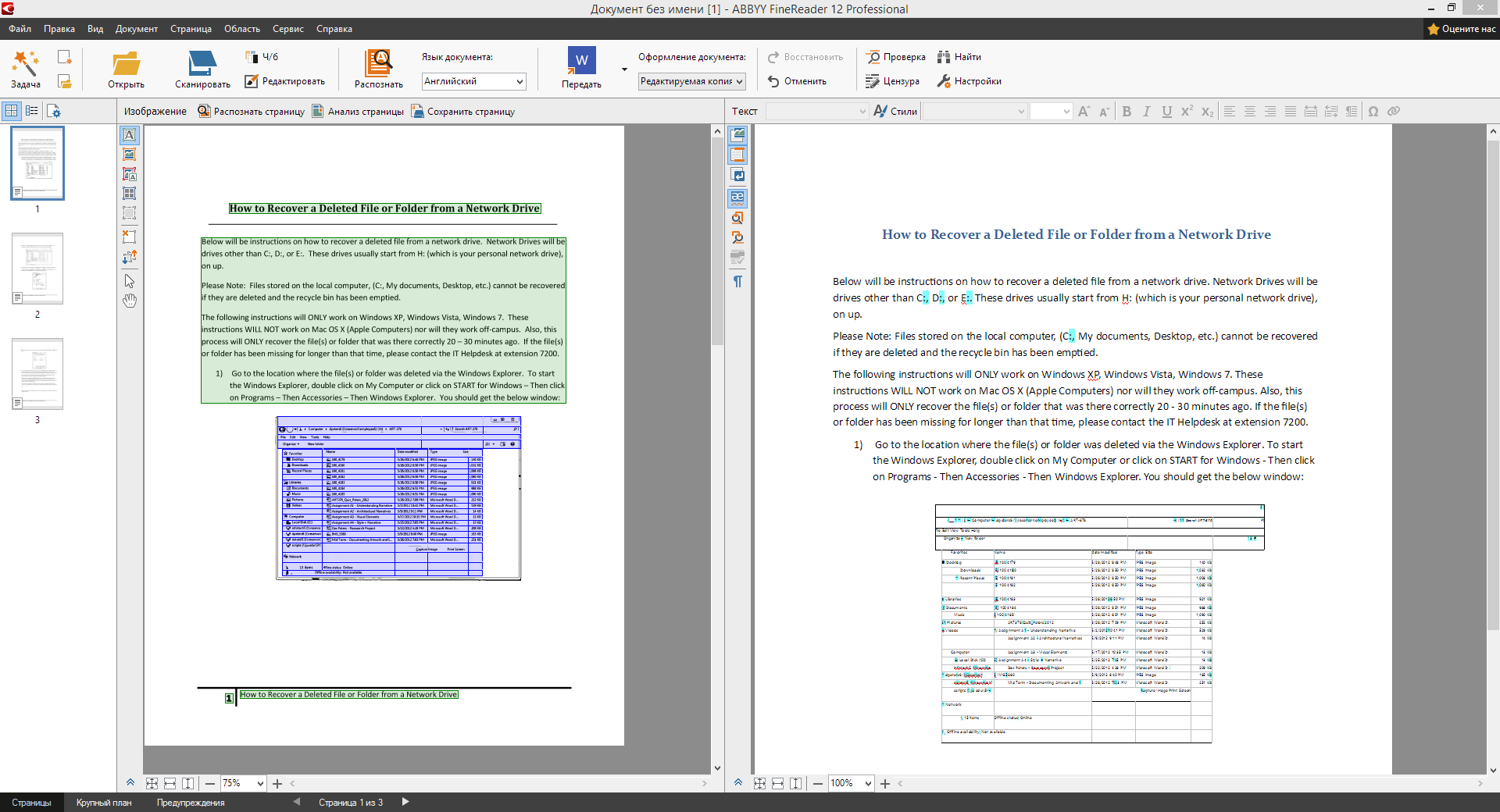 . В ее основе лежит принцип цельного распознавания документа: он анализируется и распознаётся как единое целое, а не постранично. При этом всевозможные колонки, колонтитулы, шрифты, стили, сноски и изображения остаются нетронутыми или заменяются близкими к оригиналу.