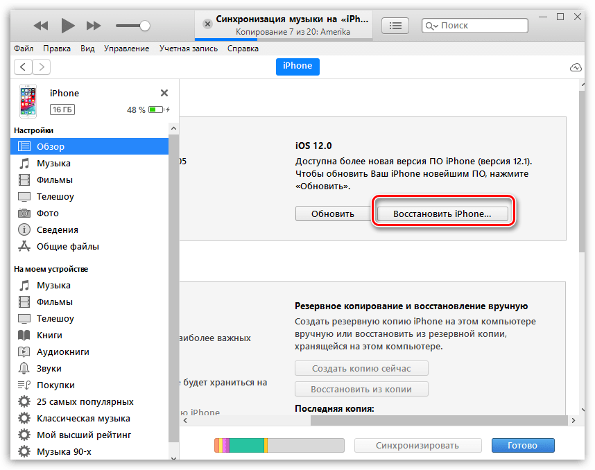 Подробнее: Как восстановить iPhone, iPad или iPod через iTunes