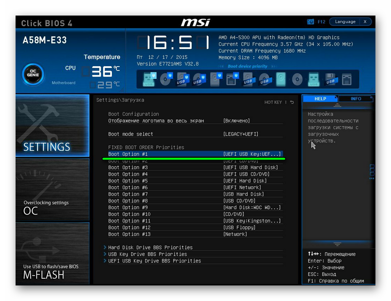 Настройка BIOS для загрузки с флешки