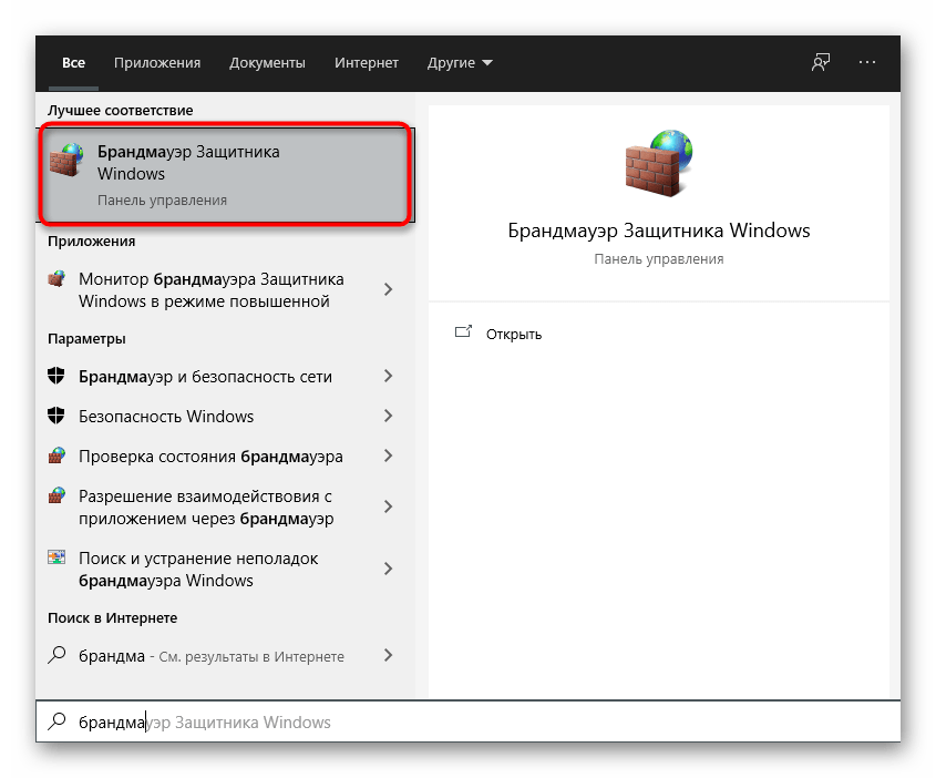 Обычно Брандмауэр Защитника Windows не оказывает негативного влияния на установку Discord, но ситуация меняется, если изменения для этого компонента были внесены вручную или системным администратором. Даже если вы уверены, что ничего не меняли, все равно советуем на время отключить межсетевой экран и повторно запустить установку, проверяя, пропадет ли ошибка 502.