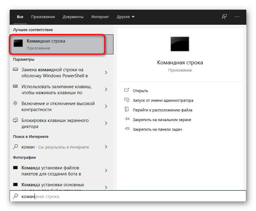 - Откройте «Пуск», отыщите там приложение «Командная строка» и запустите его.