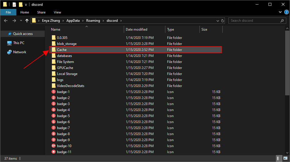 2) В папке Discord дважды щелкните значок Кеш папку, чтобы открыть ее.