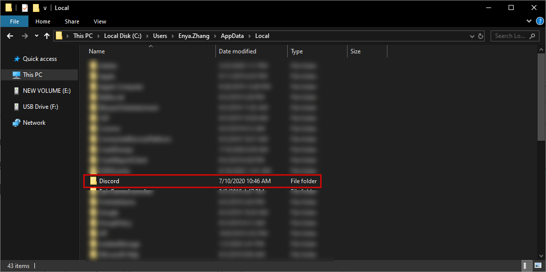 - В Проводнике Windows удалите папку Discord.