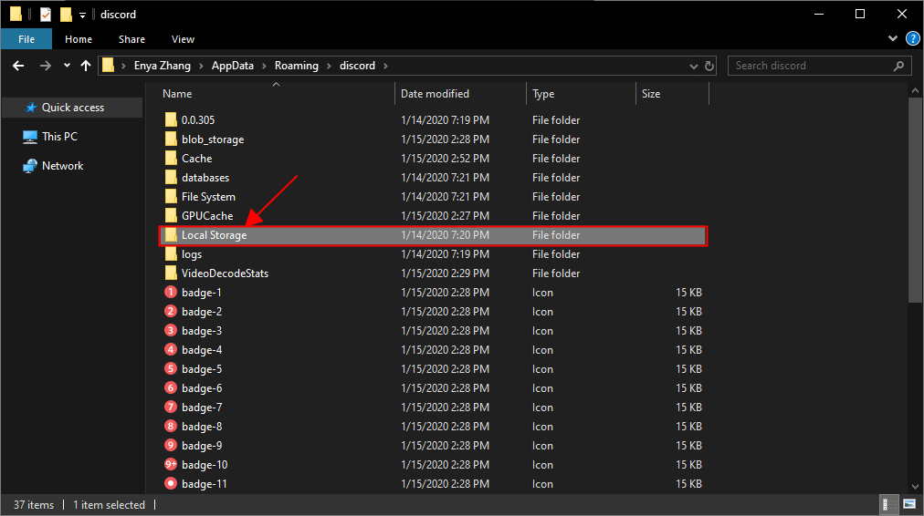 4) Вернитесь к Раздор папку и дважды щелкните Локальное хранилище папка.