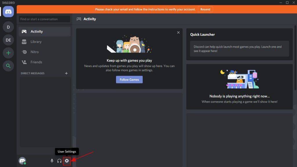 1) В Discord перейдите к Пользовательские настройки и щелкните по нему.