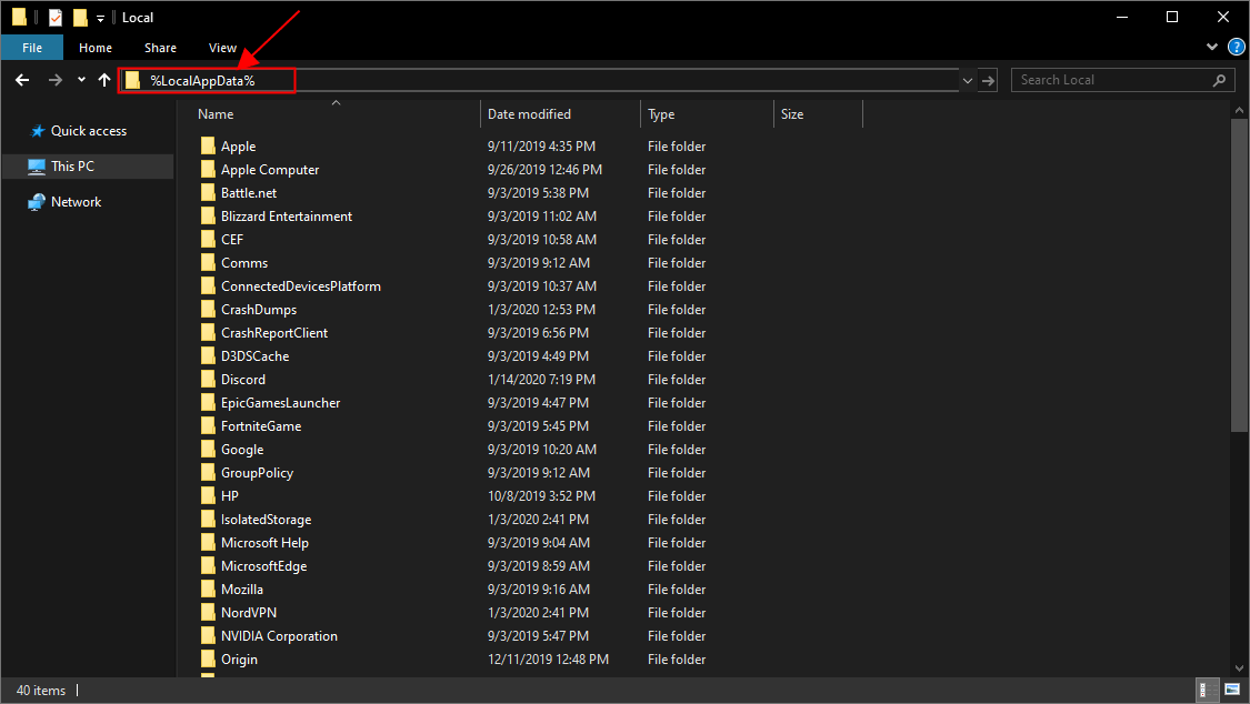 - Отправьте команду:% localappdata%;