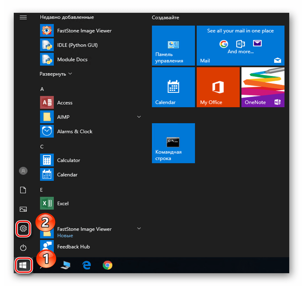 - Нажмите кнопку «Пуск». В открывшемся меню кликните по иконке «Параметры». По умолчанию она отображается как векторная шестеренка. В качестве альтернативы можете воспользоваться комбинацией клавиш «Windows+I».