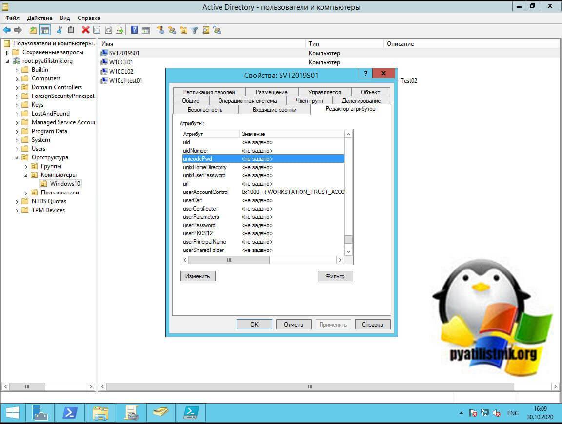 Хочу отметить, что атрибуты unicodepwd (текущий пароль) и lmpwdHistory (предыдущий пароль) вы будите видеть в редакторе атрибутов, как пустые, это связано с безопасностью, и они так же неиндексируемые. Все скрыто от чужих глаз.