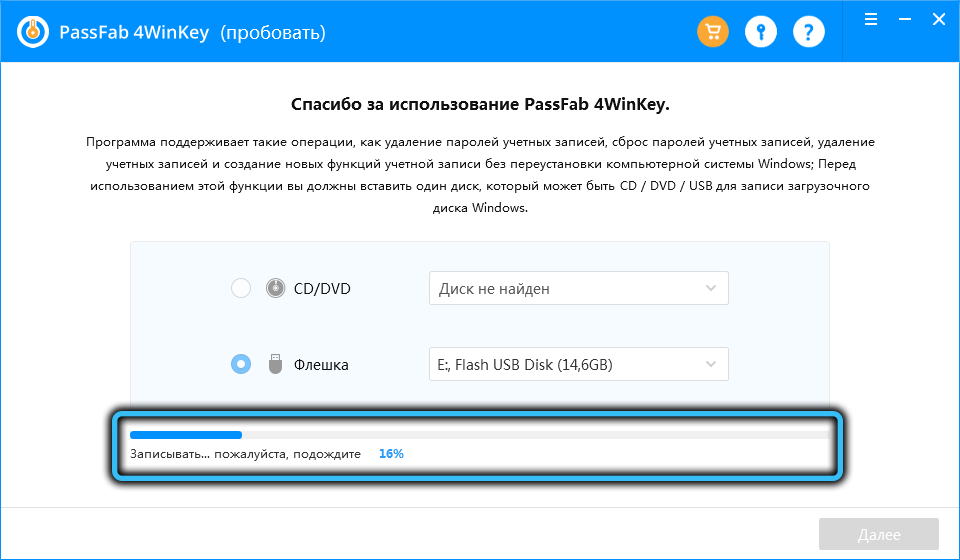 ВАЖНО. После нажатия кнопки «Далее» носитель будет отформатирован, поэтому заранее позаботьтесь о том, чтобы на нём не было важных для вас данных, перенеся их на другой накопитель.