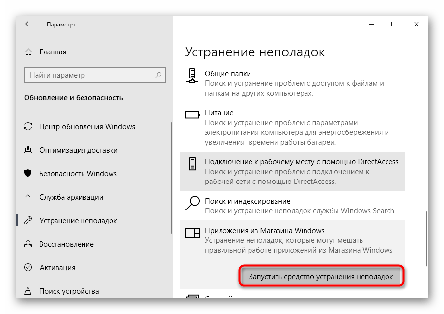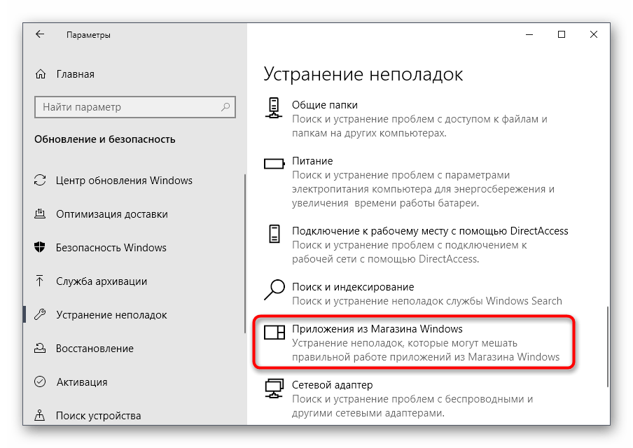 Через нее запустите средство устранения неполадок «Приложения из Магазина Windows».