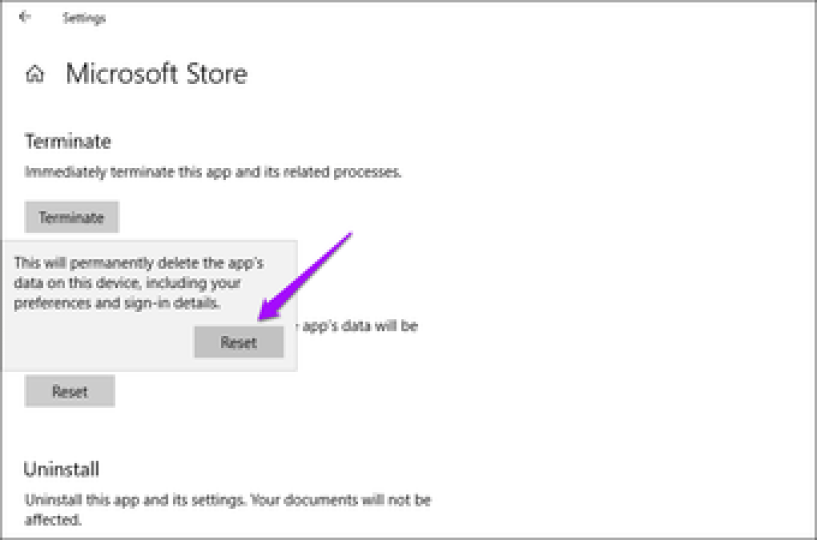 Очистите кеш Microsoft Store.