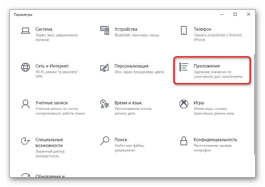 - В «Параметры» отыщите раздел «Приложения».