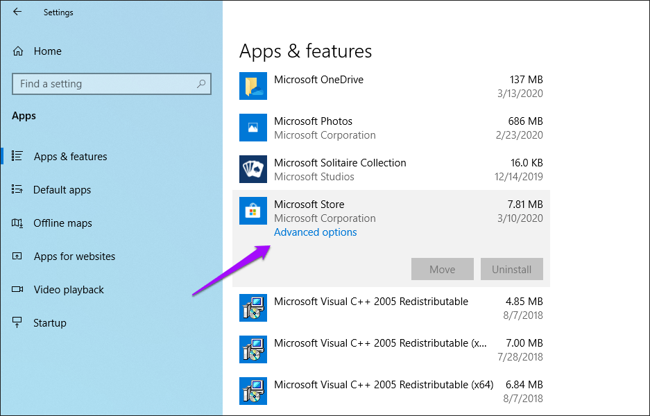 2 причина – причина в кэше приложения Microsoft Store