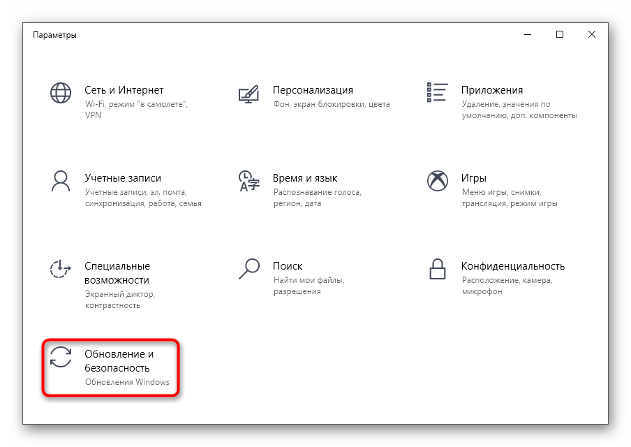 Опуститесь вниз списка и выберите последнюю плитку «Обновление и безопасность».