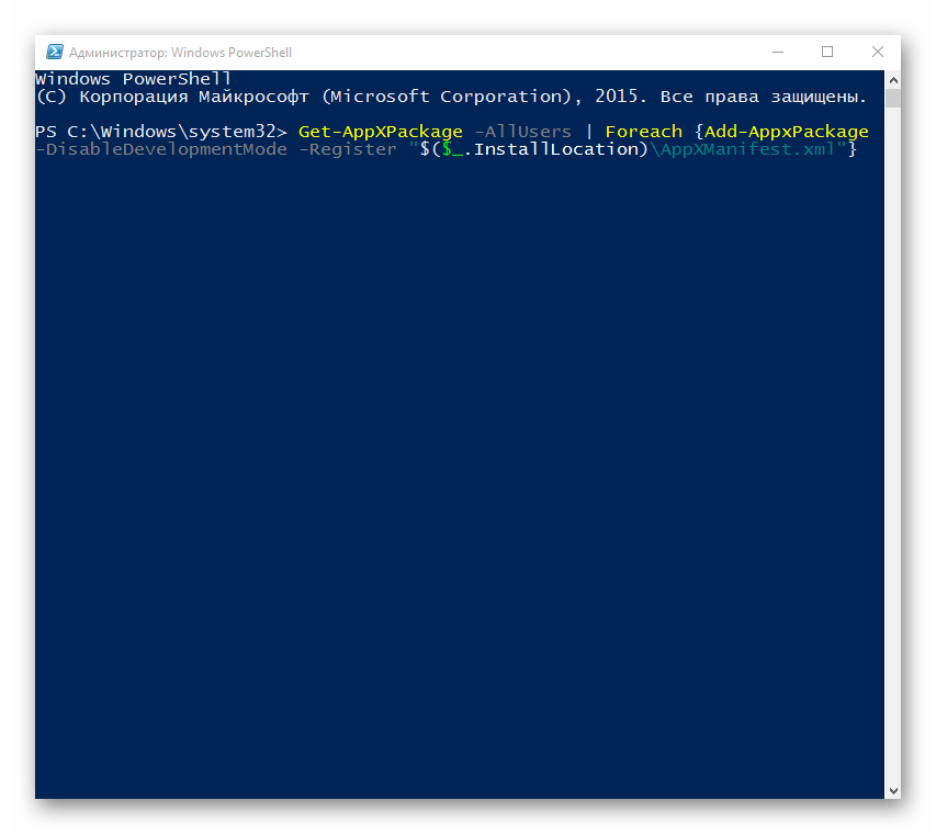 Get-AppXPackage -AllUsers | Foreach {Add-AppxPackage -DisableDevelopmentMode -Register “$($_.InstallLocation)\AppXManifest.xml”}