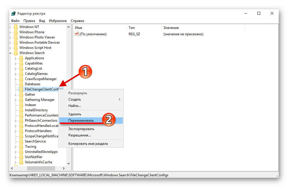 Теперь раскрываем раздел «Windows Search» и находим «FileChangeClientConfigs».