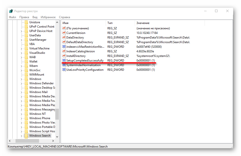 С помощью «Редактора реестра» можно решить множество проблем, в том числе и неработоспособность «Поиска». Данный метод требует особой внимательности.