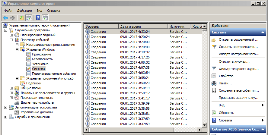 Определить точные причины неисправности помогут логи системы. Для доступа к ним необходимо правой кнопкой мыши кликнуть по иконке «Компьютер», которую можно найти на рабочем столе или в меню «Пуск», а в выпадающем контекстном меню выбрать пункт «Управление».
