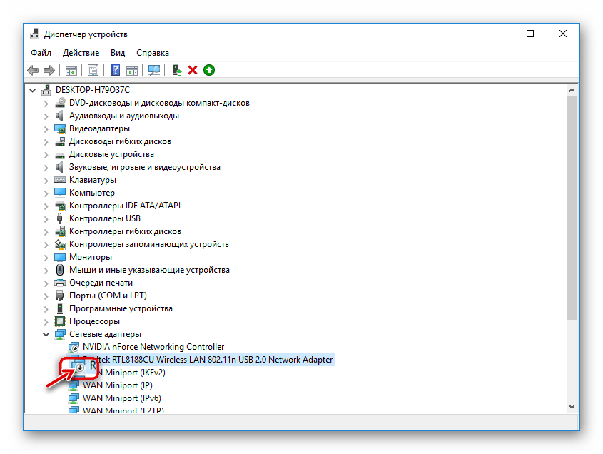 Определить, что устройство отключено, можно через тот же диспетчер устройств. Отключенные устройства в нем обозначаются указывающей вниз стрелочкой на иконке.
