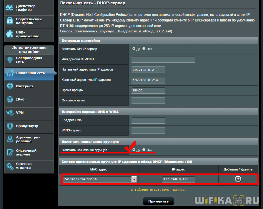 Теперь возвращаемся в админку маршрутизатора в раздел, отвечающий за DHCP-сервер.