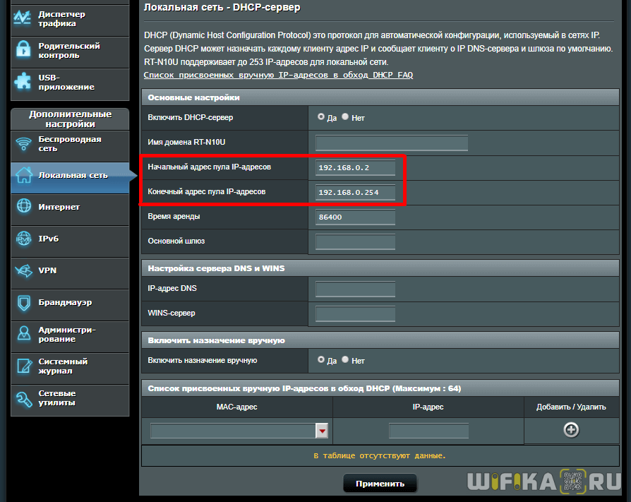 В моем примере у роутера адрес 192.168.0.1, а диапазон имеет значения от 2 до 254 — это значит, что IP наших устройств должны быть от 192.168.0.2 до 192.168.0.254 — никак не 192.168.1.2 или 192.168.0.1, так как первый не из нашей подсети, а второй — уже задан для самого маршрутизатора.