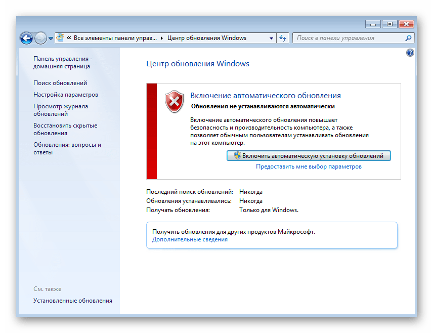 Подробнее:Обновления в операционной системе Windows 7Решение проблем с установкой обновления Windows 7Ручная установка обновлений в Windows 7