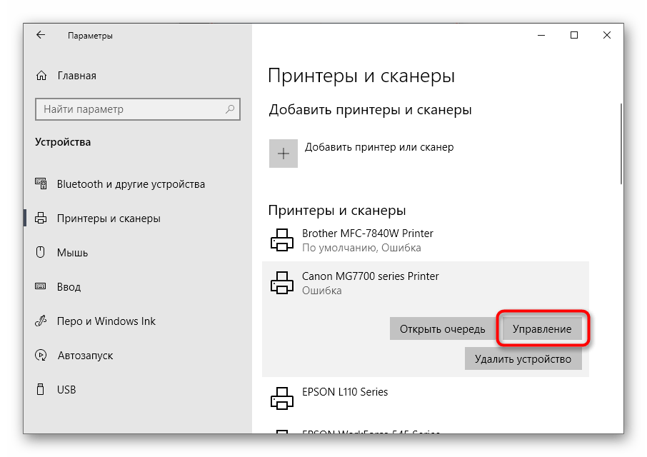 Появится список с доступными действиями, где щелкните по кнопке «Управление».