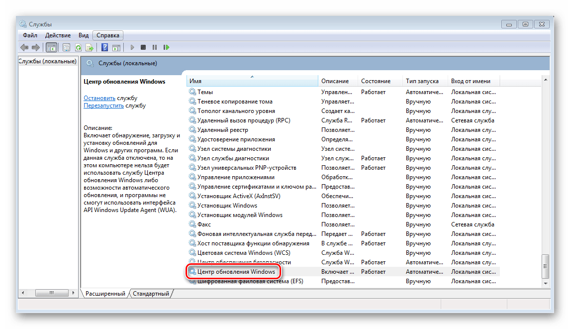 Часто загруженность возникает во время работы службы автоматического обновления Windows так, как она в фоновом режиме загружает систему, выполняя поиск новых обновлений или их скачивание. Поэтому можно попробовать ее отключить, это поможет немного разгрузить процессор. Осуществляется данное действие следующим образом: