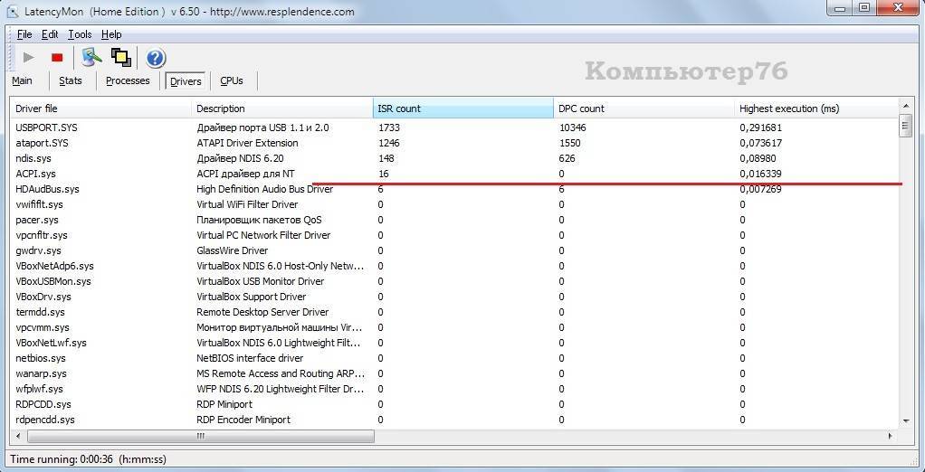 LatencyMon эффективно сканирует процессы и драйверы для определения неполадок