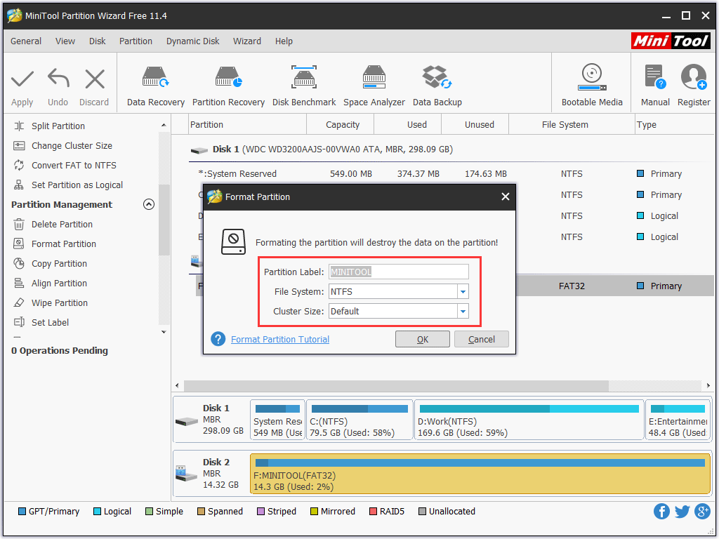 Конечно, вы можете отформатировать целевую SD-карту Android в Проводнике Windows или Управлении дисками. В то же время вы также можете использовать сторонний менеджер разделов – MiniTool Partition Wizard для упрощения форматирования с помощью Форматировать раздел характерная черта.