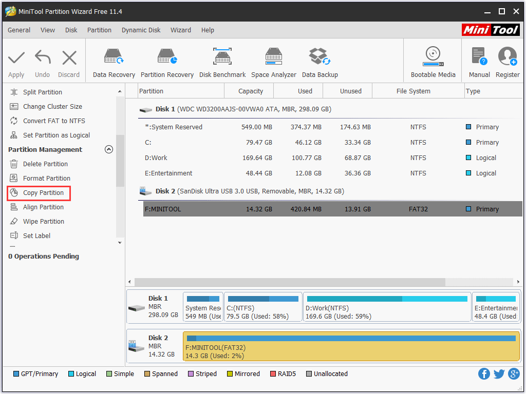 Здесь вы все еще можете использовать MiniTool Partition Wizard и его Копировать раздел функция.