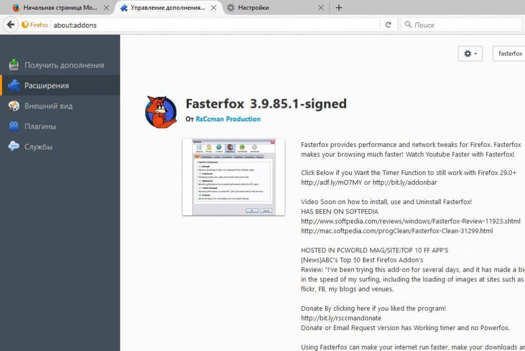 Расширение для Firefox под названием Fasterfox автоматически устанавливает некоторые из описанных в данной статье параметров и предлагает функцию предварительной загрузки контента. Все это ускоряет работу в Сети, однако трафик существенно возрастает.