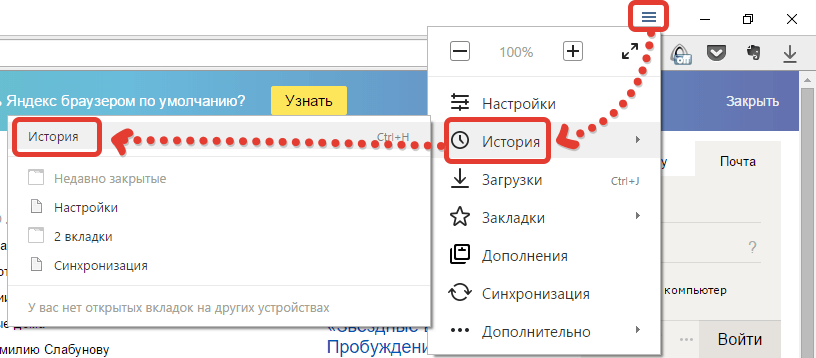 Нажимаем на иконку с тремя полосками, выбираем пункт «История», находим сайт и открываем его