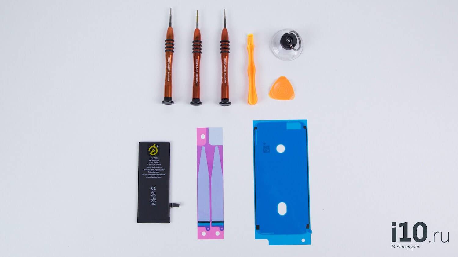 В набор входят все необходимые инструменты и сам аккумулятор. Даже мы смогли заменить аккумулятор на iPhone 6s за полчаса — вот, как это было.
