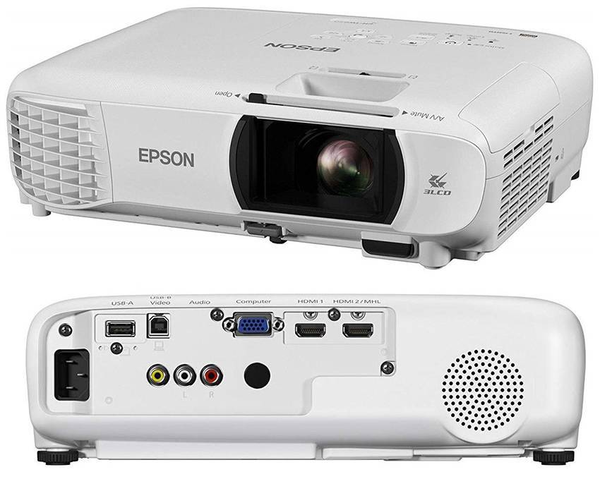 Epson EH-TW650 — еще одна модель Epson, к которой стоит присмотреться. Технология 3LCD, разрешение 1920×1080, поддержка воспроизведения с USB-носителей. Из недостатков устройства часто отмечают засветы в углах, отсутствие аудиовыхода (есть два встроенных динамика), отсутствие поддержки 3D. Цена — от 30 000 рублей.
