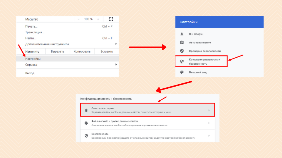 Бывают и другие, неизвестные проблемы, из-за которых письма не отправляются. Чаще всего проблема решается с помощью очистки истории и куков в браузере. Чтобы очистить браузер, нужно зайти в настройки, в раздел «конфиденциальность и безопасность».