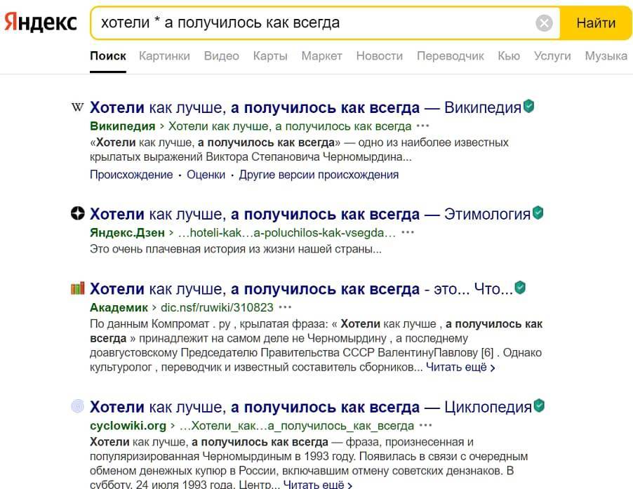 Если вы забыли одно или два слова в цитате — замените их * (звёздочкой), и скорее всего, система вас поймёт.