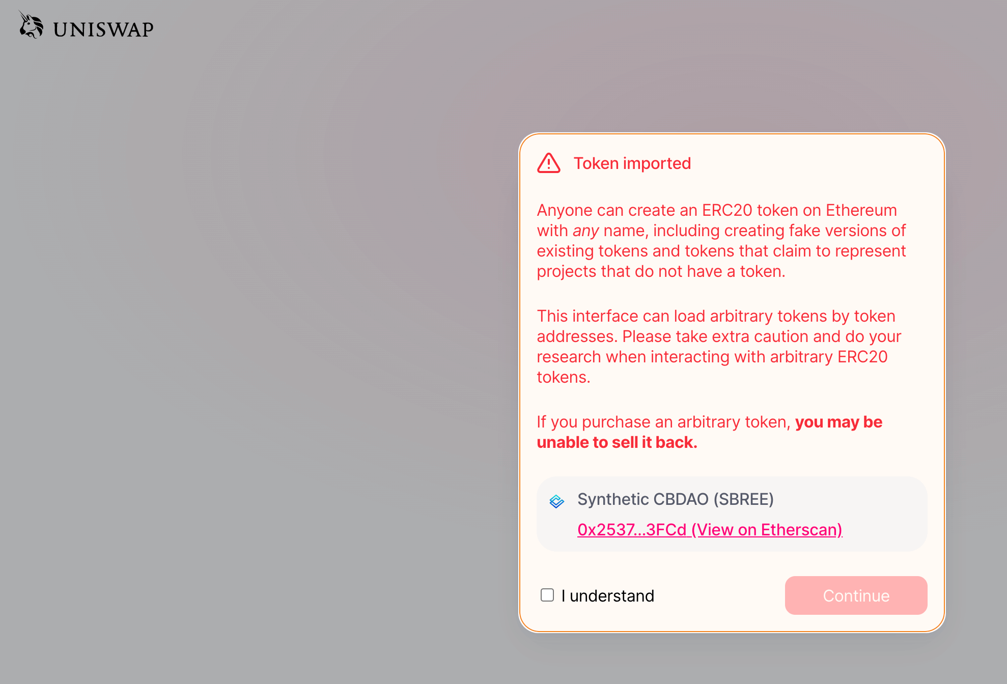 Отметим, что платформа регулярно предупреждает о вероятности попадания на поддельный токен — выглядит это так.