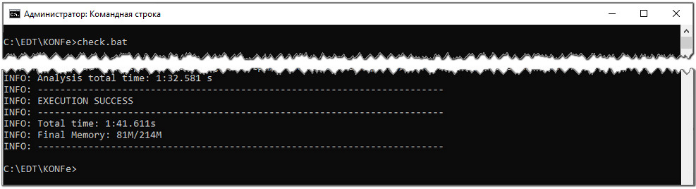 Чтобы запустить анализ, мы снова запускаем командную строку и вызываем в ней батник.