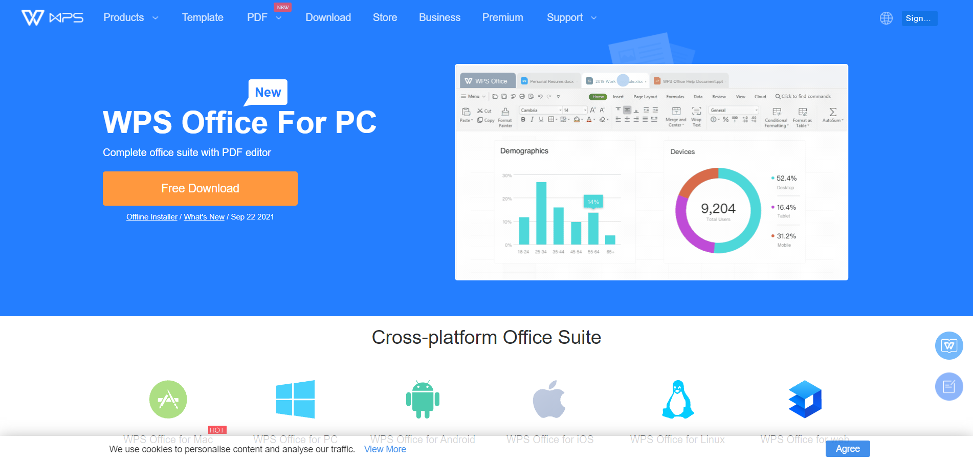 Хотя приведенная ниже ссылка приводит вас к загрузке Windows, есть также версия, доступная для устройств Linux, Android и iOS, что очень удобно, если вы хотите использовать Kingsoft Office Suite на мобильных устройствах.