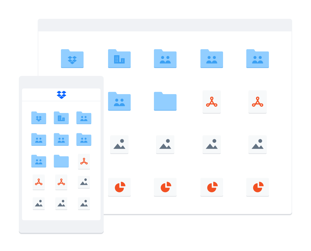 Систематизация и организация общего доступа к папкам, которые хранятся в разных местах, может превратиться в крайне сложную задачу. Dropbox устраняет эти проблемы благодаря использованию единого защищенного хранилища для всех ваших папок и файлов. Вы всегда будете точно знать, где хранятся ваши рабочие файлы, и сможете быстро предоставлять ограниченный доступ к папкам как на жестком диске, так и онлайн.
