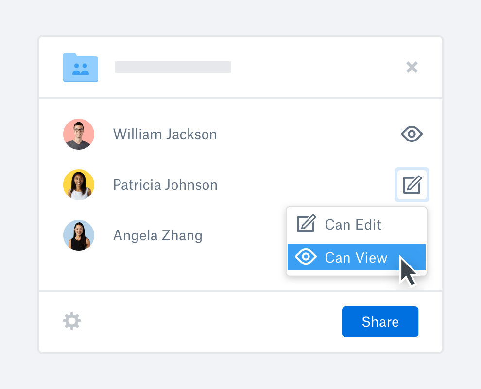 С Dropbox можно предоставлять доступ к папкам и приглашать в них не только коллег, но и тех, кто не работает в компании. Разрешения действий с папками позволяют открывать или закрывать содержимое папок для редактирования и просмотра.